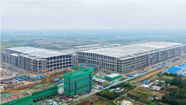 项目开工以来,新站高新区持续优化项目全周期服务,强化要素保障,及时协调解决项目推进中的问题,全力推动项目各关键节点高效衔接。今年8月11日,约80万平方米的主厂房工程,仅用168天率先实现封顶,刷新全球同类规模厂房建设速度纪录。