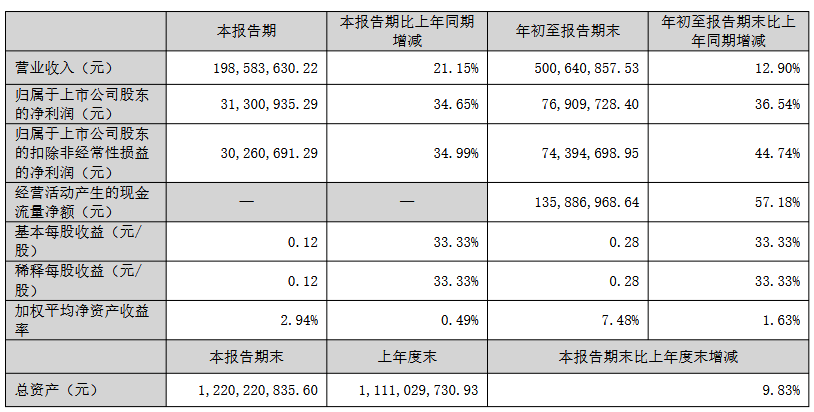 10月20日晚,日久光电(003015)10月20日发布2025年第三季度报告,公司第三季度实现营业收入1.99亿元,同比增长21.15%;归母净利润3130.09万元,同比增长34.65%。前三季度实现营业收入5.01亿元,同比增长12.90%;归母净利润7690.97万元,同比增长36.54%。