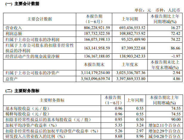 瑞联新材上半年归母净利润1.66亿元,同比上升74.2%
