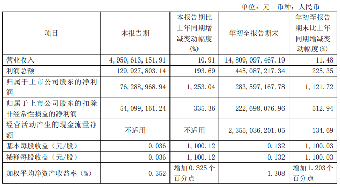 杉杉股份第三季度净利润达7628.9万元,同比大增1253.04%