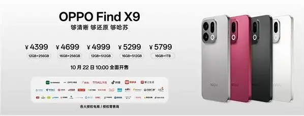 核心配置上,OPPO Find X9采用6.59英寸1.5K直屏,搭载联发科天玑9500平台,内置7025mAh电池,支持80W有线和50W无线充,出厂预装ColorOS 16系统,后置5000万像素超广角、5000万像素广角主摄以及5000万像素长焦,同时配备丹霞色彩还原镜头,前置3200万像素,支持超声波屏幕指纹、满级防水以及红外遥控。