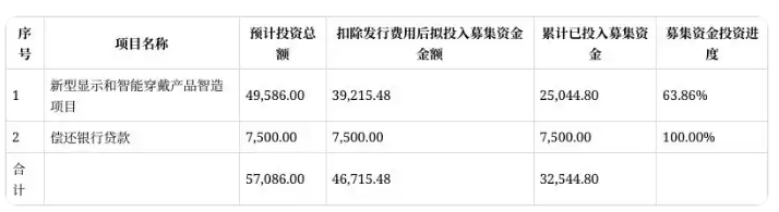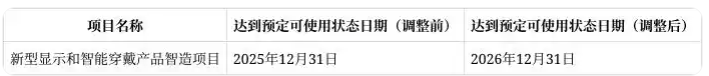 根据公告,本次仅对“新型显示和智能穿戴产品智造项目”的进度进行调整,具体如下: