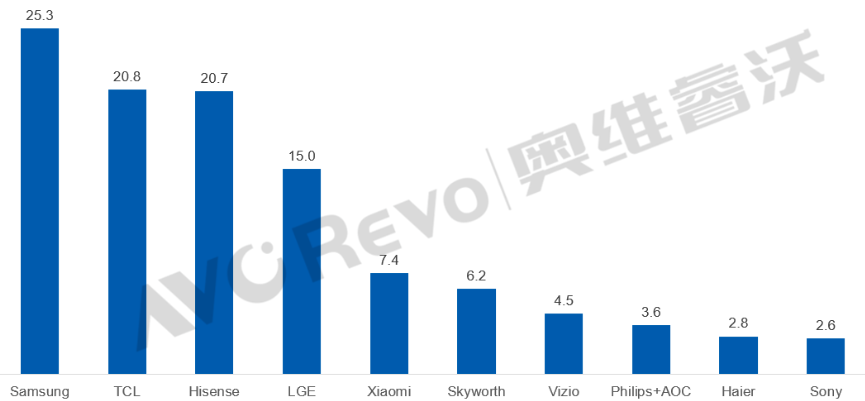奥维睿沃(AVC Revo)预测,四季度全球TV出货小幅下降0.7%,全年累计同比预计下降0.7%。