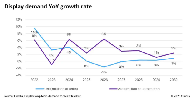 11月12日消息,市场研究机构Omdia昨日发布报告,主要得益于市场对大尺寸屏幕的持续青睐,预测全球显示面板需求面积将在2026年实现同比增长6%。