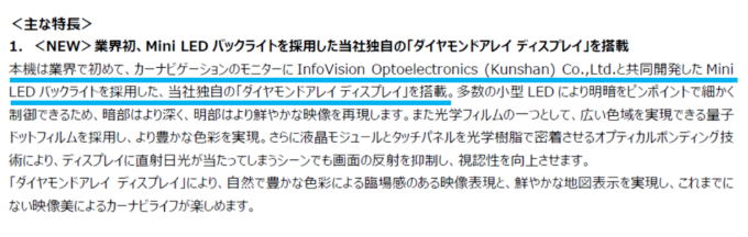 这是JVCKENWOOD首次在车载导航系统中公开采用Mini LED背光方案,是与龙腾光电共同开发的。据介绍,龙腾光电提供的Mini LED显示方案在高亮度、高对比度和高可靠性等方面具有明显优势。