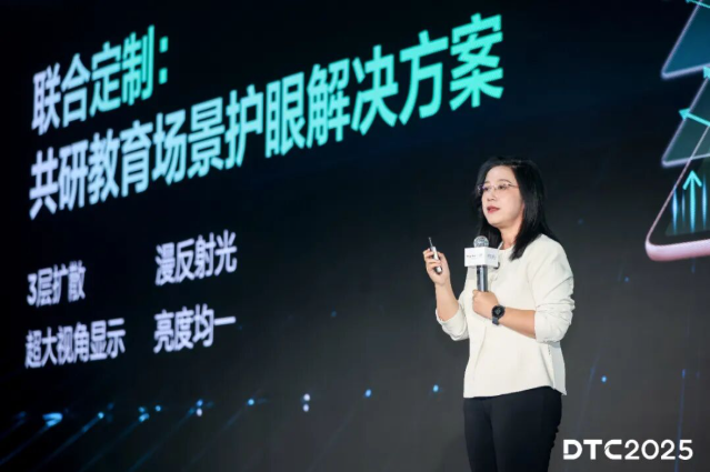 好未来集团执行总裁位晨分享与TCL华星共研的成果:“一块给孩子的好屏,是健康与专注的守护者。在与TCL华星共研教育场景学习屏的过程中,我找到了答案——有温度的科技,是给孩子最好的礼物。”TCL华星与好未来联合定制教育场景护眼方案,包括“一屏三模”、3层扩散漫反射光、7:5黄金比例教育屏等创新成果,致力于以共研成果,持续打造更优质的学习场景解决方案。