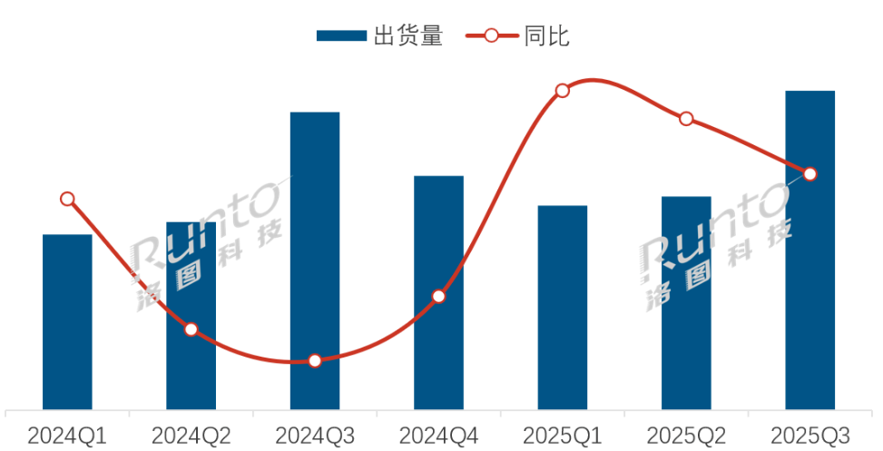 其中,海外市场的出货量为40.6万台,同比上涨15.3%;中国市场为50.5万台,同比上涨1.1%,占全球出货量的比例约为55.4%,较2024年减少了3.2%。